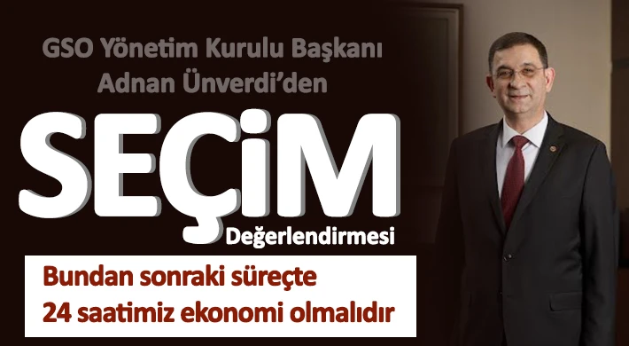 Gaziantep Sanayi Odası (GSO) Yönetim Kurulu Başkanı Adnan Ünverdi, Cumhurbaşkanlığı ve 28. dönem milletvekilliği genel seçimlerinin tamamlanması ile birlikte ekonomiye odaklanılması gerektiğini belirtti.