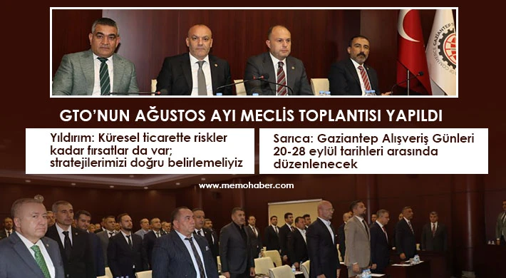 Gaziantep Ticaret Odasında (GTO) ağustos ayı olağan meclis toplantısı, Meclis Başkan Yardımcısı Ali Bayram Sarıca Başkanlığında Yönetim Kurulu, Meclis ve Disiplin Kurulu üyelerinin katılımıyla gerçekleştirildi.