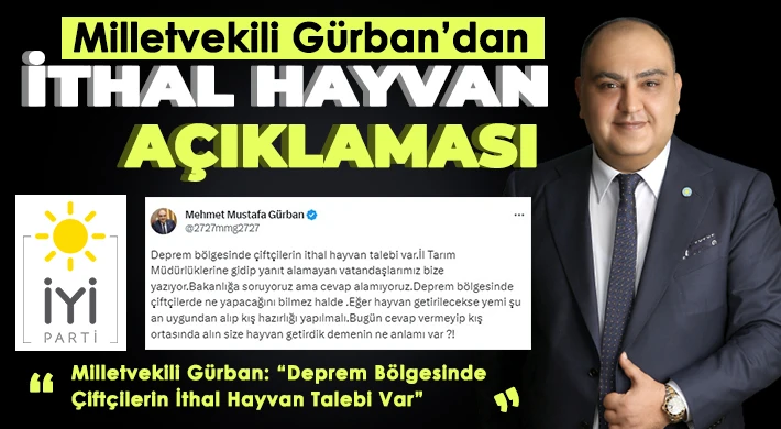 İYİ Parti Gaziantep Milletvekili Mehmet Mustafa Gürban, sosyal medya hesabından bakanlığa sitem ederek, deprem bölgesindeki çiftçilerin hayvan talebinin karşılanmasını istedi.