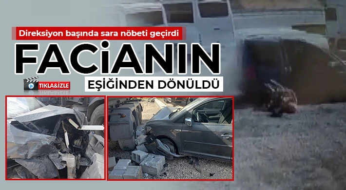 Gaziantep'te sürücünün direksiyon başında sara nöbeti geçirmesi sonucu kontrolden çıkan hafif ticari araç, yol kenarında bulunan galerideki yakıt tankerine çarparak durabildi. Güvenlik kamerasına da yansıyan kazada hafif ticari araçtaki 3 kişi yaralandı.