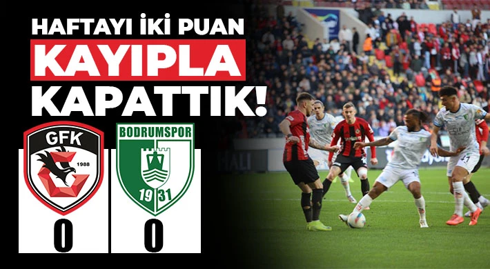 Gaziantep Futbol Kulübü kendi sahasında oynadığı Bodrum FK maçında golsüz beraberlikle ayrılarak haftayı iki puan kayıpla kapattı. Süper Lig’in 20. haftasında Bodrum FK‘yı ağırlayan Gaziantep Futbol Kulübü kendi sahasında rakibiyle 0-0 berabere kalarak haftalar sonra iç sahada puan kaybetti. Gaziantep Futbol Kulübü iç sahada yakaladığı galibiyet serisine Bodrum FK karşısında nokta koyarken futbolcuların bir çok net pozisyondan faydalanamadıkları gözlendi. Kırmızı-siyahlı takım Bodrum FK karşılaşmasından aldığı tek puanla ligde puanını 26’ya çıkarttı.