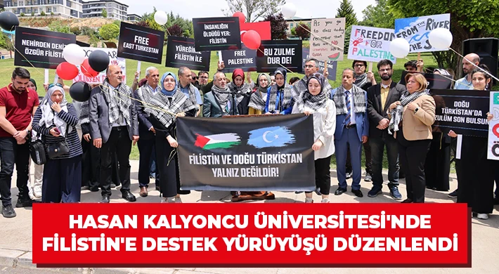 Basın bildirisinde şu ifadeler yer aldı: “Hasan Kalyoncu Üniversitesi olarak, bugün burada bir araya gelmemizin amacı, İsrail tarafından Filistin’de yapılan zulme ve soykırıma hep birlikte güçlü bir şekilde ‘DUR’ demektir, zulmün karşısında durmaktır! Bugün burada, Filistin halkının yanında durarak, haklı özgürlük ve adalet taleplerini desteklemek amacıyla bir araya geldik. Çok açıktır ki, Filistin topraklarında yaşanmakta olan olaylar, insanlığa karşı işlenen bir haksızlık ve zulümdür. 1948'den bugüne kadar milyonlarca masum Filistinliyi zorla yerlerinden etme, açlık ve ölümle sınayan İsrail yayılmacılığı, 7 Ekim 2023 tarihinden itibaren, bir utanç tablosu, bir “soykırım” halini aldı. 214 gündür süren saldırılarda 35 bin Filistinli İsrail tarafından gerçekleştirilen saldırılarda hayatını kaybetti. Çocuk, kadın, erkek, genç, yaşlı ve engelli ayırt etmeksizin 35 bin canın İsrail barbarlığınca katledildiği, binlerce kişinin evinden, yurdundan göçe sürüklendiği, kundaktaki bebeklerin bombardımanlar sonucu enkaz altında can verdiği soykırımın yaşandığını üzüntüyle müşahade ediyoruz. Bugün düzenlediğimiz yürüyüş ve bu basın açıklaması ile bizler Filistin halkının yanında olduğumuzu bir kez daha gösteriyor ve dayanışmanın gücünü vurguluyoruz. İnsanlık için adalet talep etmek, bizim temel sorumluluğumuzdur ve bu sorumluluğu yerine getirmek için gereken adımları atmaya devam edeceğiz. Filistin halkına yapılan haksızlıkların son bulması ve barışçıl bir çözümün sağlanması için uluslararası toplumu, insan hakları savunucularını ve herkesi, adaletin sağlanması için bir araya gelmeye çağırıyoruz. Unutmayalım ki, barış ve adalet ancak dayanışma ve kararlılıkla mümkündür.”