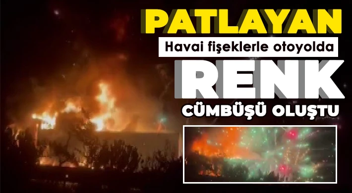 Kısa sürede tırı saran yangının, dorsede bulunan havai fişeklere sıçraması sonrası ortaya ilginç görüntüler çıktı. Yanan tırdaki havai fişeklerin birer birer patlaması sonrası otoyolda adeta renk cümbüşü yaşanırken, yoldaki trafik ise kontrollü bir şekilde sağlanmaya çalışıldı.