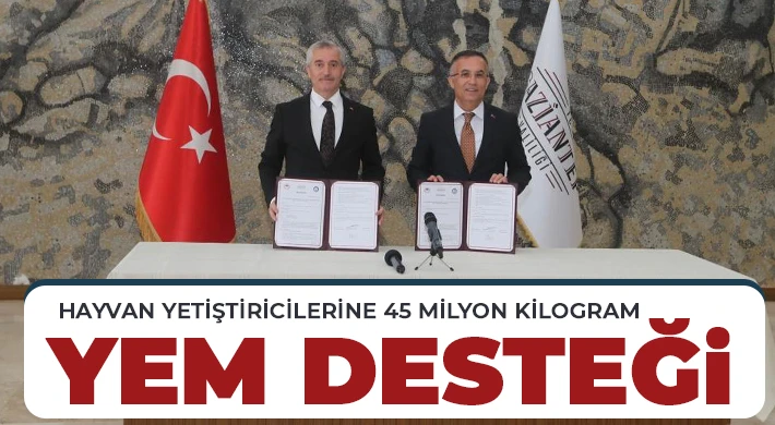 Hayvan yetiştiricilerine yem desteğini sürdüren Şahinbey Belediye Başkanı Mehmet Tahmazoğlu, 7 milyon kg daha hayvan yemi desteğinde bulunmak, için protokol imzaladı.