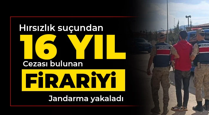 Gaziantep'te hırsızlık suçundan hakkında 16 yıl 4 ay kesinleşmiş hapis cezası bulunan firariyi jandarma yakaladı.