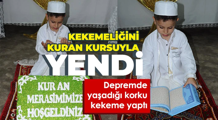 Gaziantep’te yaşanan deprem sonrası yaşadığı korkuyla kekeme olan 6 yaşındaki İsmail Çınar hocaların gayreti ile yeniden başladığı kuran sayesinde kekemeliğini yendi.