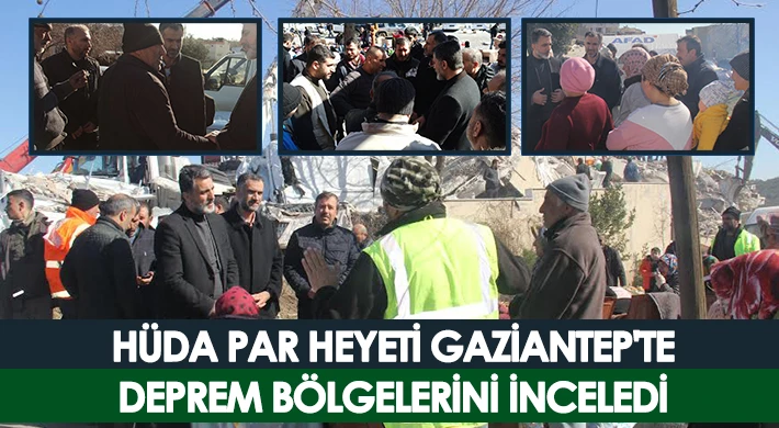 HÜDA PAR Genel Başkan Yardımcısı Abdurrahman Cevher, Parti Sözcüsü Yunus Emiroğlu, GİK üyesi Mahmut İrtem'den oluşan bir heyet, Gaziantep'e gelerek depremin vurduğu bölgelerde incelemelerde bulundu.