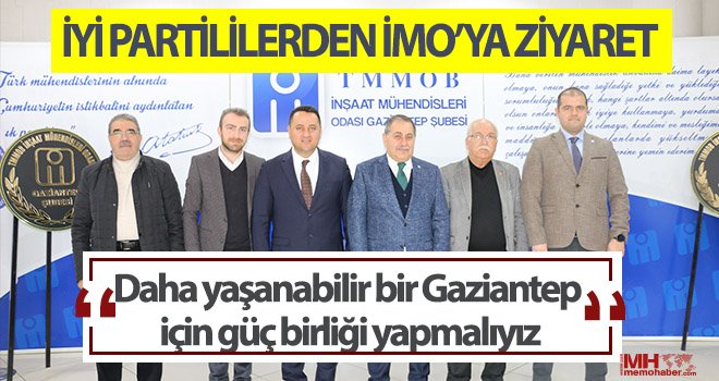 İMO Gaziantep Şube Başkanı Gökhan Çeliktürk ise, 21. Dönem Milletvekili Mehmet Ay ve beraberindekilere ziyaretlerinden dolayı teşekkür ederek, şunları söyledi: “İnşaat Mühendisleri Odası Gaziantep Şube Yönetim Kurulu olarak, gerek mesleğimizle ilgili, gerekse de bir sivil toplum kuruluşu olarak Gazi şehrimizin sorunları ile ilgili konularda her zaman duyarlı olduk. Yönetim Kurulu olarak, yeşil alanların katledilmemesi, yanlış imar uygulamaları, deprem master planının hazırlanması ve kentin genelini ilgilendiren sorunlarda her zaman müdahil olduk, gerektiğinde yargıya başvurarak yanlış uygulamaların önüne geçtik. Her zaman Gaziantep’in ve Gazianteplilerin menfaatleri doğrultusunda hareket ettik.”