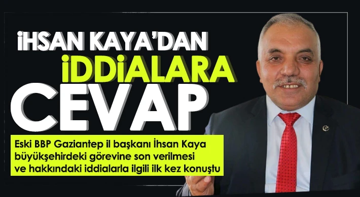 Büyük Birlik Partisi Gaziantep eski il başkanı İhsan Kaya’nın Gaziantep Büyükşehir Belediyesi’ndeki görevine son verildi. Görevine son verilen İhsan Kaya, hakkındaki iddialara yazılı basın açıklamasıyla cevap verdi.