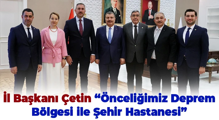 ‘Önceliklerinin deprem bölgesi ile Şehir Hastanesi olduğunu açıklayan Çetin, “Sağlık Bakanımız Dr. Fahrettin Koca’yı; TBMM Grup Başkanvekilimiz Abdülhamit Gül ve Gaziantep Milletvekillerimizle ziyaret ederek Gaziantep’i konuştuk. Bakanımızdan başta Şehir Hastanesi olmak üzere Gaziantep’e kazandırılacak yeni sağlık tesislerinin müjdesini aldık. İlgisi, muhabbeti ve samimiyetinden dolayı Sağlık Bakanımız Sayın Dr. Fahrettin Koca’ya teşekkür ediyorum” ifadelerinde bulundu.