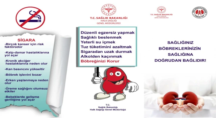 Bu bağlamda 2024 yılının teması “Böbrek Sağlığı İçin Optimal İlaç Uygulamalarına ve Sağlık Bakımına Eşit Erişim” olarak belirlenmiştir. Böbrek sağlığınızı korumak için, Sağlıklı beslenin.Yeterli miktarda su için. Tuz tüketimini azaltın. Tütün, tütün ürünleri ve alkolden uzak durun. Hareket edin. Kronik böbrek hastalığından korunmak için, Aile hekiminize başvurarak düzenli ve periyodik olarak risk değerlendirmenizi yaptırın. İlaçlarınızı hekiminize danışarak ve önerilen şekilde kullanın” denildi.