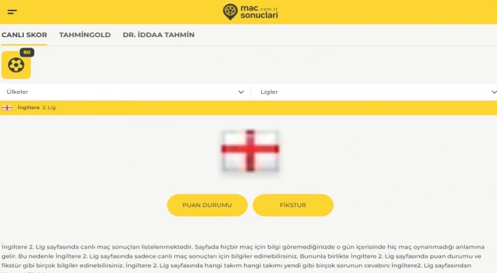Pek çok internet sitesi İngiltere 2. Ligi ile ilgili bilgilere yer vermektedir. Yalnız burada yer alan bilgiler bahis severler için zor olabilir. Çünkü bilgiler anında güncellenmediği için maç sonuçlarına anında ulaşmak isteyen kişiler için pek bir şey ifade etmeyebilir. Bu sebeple size belirttiğimiz adresi ziyaret ederek hem kaliteli hem de anında sonuçlara ulaşabilirsiniz.