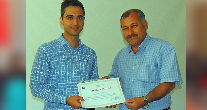 Eğitim sonunda Uzman Bekir Polat’a Yüksekokul Müdür Yardımcısı Öğr. Gör. Halim Gök tarafından teşekkür belgesi takdim edildi.