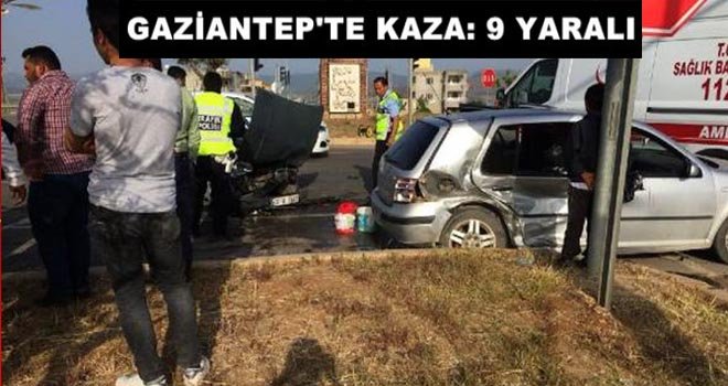 Gaziantep'in İslahiye ilçesinde, 2 otomobilin çarpıştığı kazada, 1'i ağır 9 kişi yaralandı.