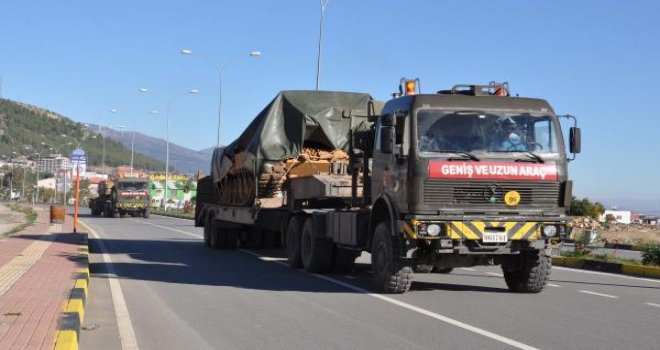 Gaziantep'in İslahiye İlçesi'nde konuşlu 106'ncı Topçu Alay Komutanlığı'ndan, Suriye sınırına askeri araç sevkiyatı yapıldı.