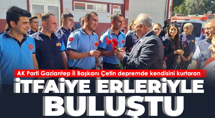 Kahramanmaraş merkezli depremlerde Nurdağı'nda enkaz altında kalan, eşini ve çocuğunu kaybeden AK Parti Gaziantep İl Başkanı Murat Çetin, kendisini enkazdan kurtaran itfaiye erleriyle buluştu.