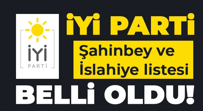 Gaziantep İYİ Parti merkez ilçe Şahinbey ve İslahiye ilçe Meclis Üyesi listesi belli oldu.