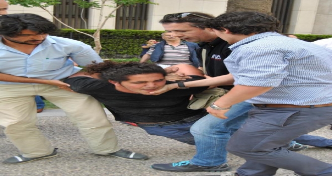 İZMİR, (DHA) - İZMİR'de Konak Meydanı'ndaki eski Sümerbank binası önünde çadır kurup, IŞİD'in Kobani'ye yönelik saldırıları sırasında ölen Bedrettin Akdeniz'i anmak isteyen gruba polis madahale etti. Polise direnen gruptan yaklaşık 30 kişi gözaltına alındı.