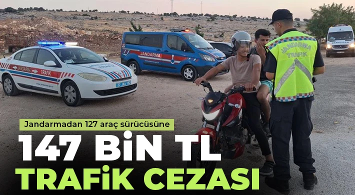 Gaziantep'te jandarma ekiplerince yapılan trafik denetimlerinde 127 araç sürücüsüne 147 bin 240 TL trafik idari para cezası uygulanırken 7 araç trafikten men edildi.