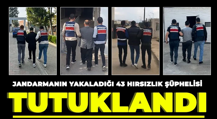 Gaziantep'te jandarma ekiplerince faili meçhul hırsızlık olaylarının aydınlatılmasına yönelik operasyonlarda yakalanan 84 şüpheli şahıstan 43'ü sevk edildiği adli mercilerce tutuklandı. Diğer 41 şahıs hakkında ise adli kontrol kararı verildi.
