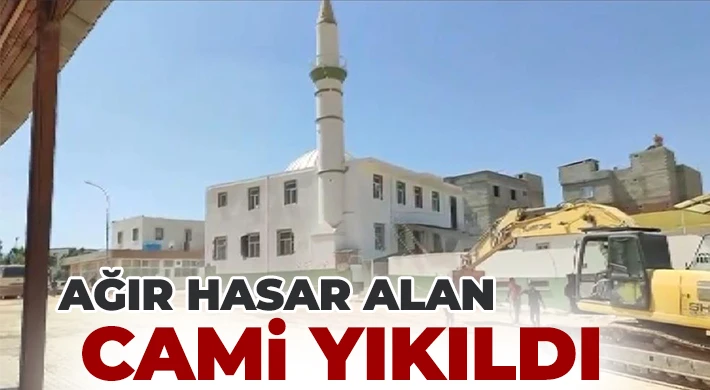 Kahramanmaraş merkezli 2 büyük depremde Karkamış’ta hasar alan bir cami kontrollü olarak yıkıldı.