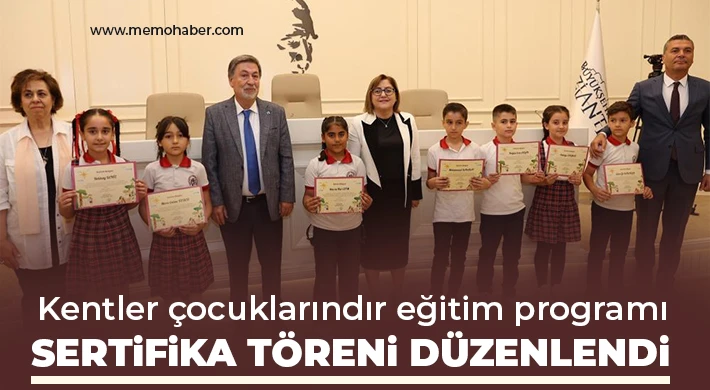 Gaziantep Büyükşehir Belediyesi, İl Milli Eğitim Müdürlüğü, Çevre ve Kültür Değerlerini Koruma ve Tanıtma Vakfı (ÇEKÜL) ve Toplum Eğitim Derneği (TDER) iş birliğinde “Kentler Çocuklarındır Eğitim Programı” sertifika töreni düzenlendi. Program yeni dönemde gönüllü hocalarla sürdürülecek.