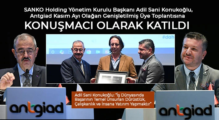 Antalya Genç İş İnsanları Derneği’nin (ANTGİAD), kasım ayı olağan genişletilmiş üye toplantısına konuşmacı olarak katılarak tecrübe paylaşımında bulunan SANKO Holding Yönetim Kurulu Başkanı Adil Sani Konukoğlu, iş dünyasında başarının temel unsurlarının dürüstlük, çalışkanlık ve insana yatırım olduğunu söyledi.