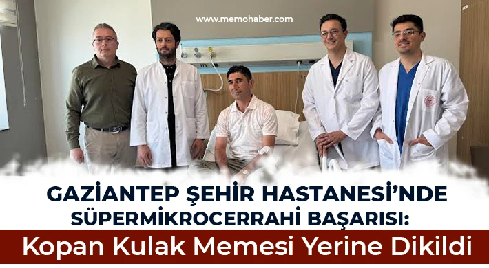 Gaziantep Şehir Hastanesi, başarılı bir süpermikrocerrahi operasyonla önemli bir sağlık başarısına imza attı. 40 yaşındaki erkek hasta Fadil Karakan, kulak memesinin tamamen kopması nedeniyle hastaneye başvurdu. Plastik Cerrahi ve Mikrocerrahi ekibinin hızlı değerlendirmesi sonrası, 2 saat süren başarılı bir operasyonla kulak memesi yerine dikildi.