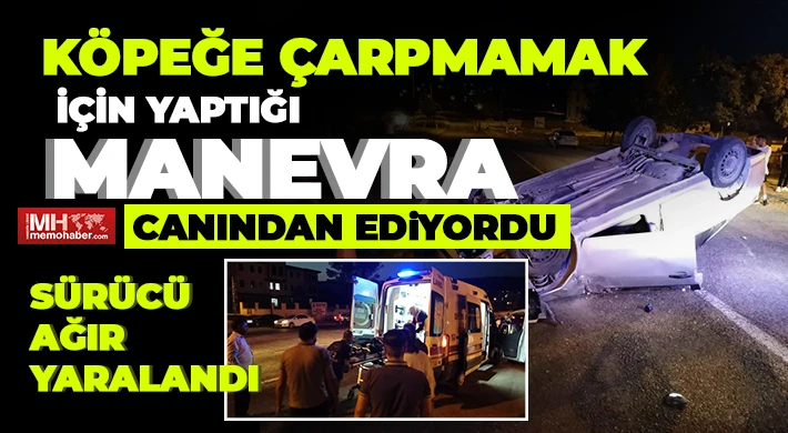 Gaziantep’in Yavuzeli ilçesinde aracıyla seyir halindeyken önüne çıkan köpeğe çarpmamak için direksiyonu kıran sürücü takla atarak ağır yaralandı.