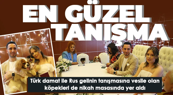 Mersin’de köpekleri sayesinde tanışan Türk damat ile Rus gelin, dünya evine girdi. Çiftin temsili nikah şahitleri olarak köpekleri de yanlarında yer aldı.