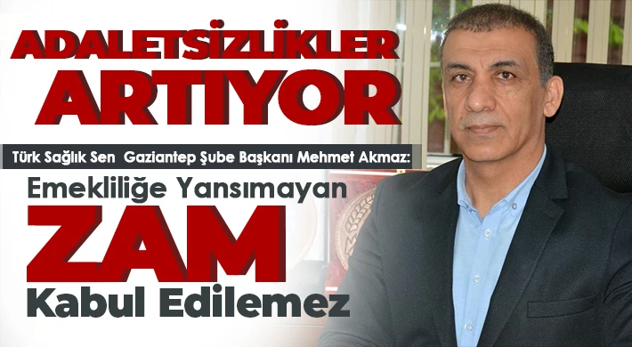 Türk Sağlık Sen Gaziantep Şube Başkanı Mehmet Akmaz, emekliğe yansımayan zammın kabul edilemez olduğunu söyledi. Akmaz, Kamu görevlilerine 2023 yılının ikinci yarısı için yapılacak artış rakamlarına ilişkin kanun teklifinin de TBMM’ye sunulduğunu söyledi.