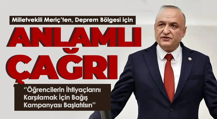 Cumhuriyet Halk Partisi (CHP) Gaziantep Milletvekili Melih Meriç, deprem bölgesinde yaşayan öğrencilerin okul öncesi ihtiyaçlarının yardımlaşma ve dayanışma ile karşılanması için, depremin hissedildiği 11 ilin valililerine kampanya başlatılması yönünde çağrıda bulundu. Meriç, ‘’Kampanya başlatılırsa 1 maaşımı bağışlamaya hazırım. Tüm milletvekili arkadaşlarımızın yanı sıra, yardımsever sanayici ve iş adamlarının da böyle bir kampanyaya destek vereceğinden eminim’’ dedi.