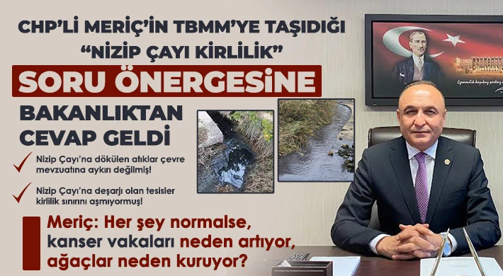 CHP’li Meriç’in Nizip Çayı’na dökülen sanayi atıkları Bakanlığa ulaşan şikâyet dilekçesi sayısına ve bu şikayetlere ilişkin ne tür işlemler yapıldığına dair sorusuna ise Bakanlık tarafından “2013 yılından itibaren Nizip Çayı ile ilgili olarak 17 şikâyet ulaşmış olup; denetimler yapılmıştır. Yapılan denetimlerde Çevre Mevzuatına aykırı herhangi bir husus tespit edilememiştir” şeklinde cevap verildi.