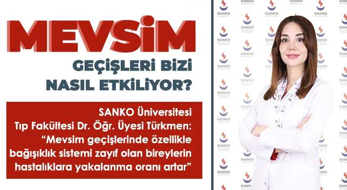 SANKO Üniversitesi Tıp Fakültesi Enfeksiyon Hastalıkları ve Klinik Mikrobiyoloji Ana Bilim Dalı’ndan Dr. Öğr. Üyesi Merve Türkmen, mevsim geçişleriyle birlikte vücutta ani sıcaklık değişimleri oluşumuyla, özellikle bağışıklık sistemi zayıf bireylerin hastalıklara yakalanma oranının arttığını söyledi.