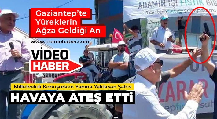 CHP Gaziantep Milletvekili Melih Meriç fıstıkçıların sorunlarını dile getirirken yanına yaklaşan bir şahıs silahını çekerek havaya ateş etti. Vekilin 5 metre yakınına kadar gelen şahısa korumalar müdahale etti.
