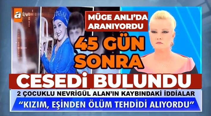 Öte yandan Nevrigül Alan’ın bir süre önce kayıp olduğu için canlı yayında Müge Anlı'nın programlarına konu olduğu öğrenildi.