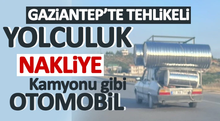 Dayanıklık ve yüksek çekişi nedeniyle sosyal medyada büyük ilgi gören bir otomobilin Gaziantep'te bagajından tavanına kadar yüklenen su depoları ile tehlikeli yolculuğu objektiflere yansıdı.