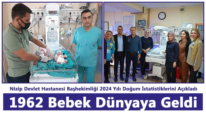 Nizip Devlet Hastanesi Başhekimliği Kadın Doğum Servisi, 2024 yılı boyunca gerçekleşen doğumlara ilişkin istatistiklerini paylaştı. Verilere göre, hastanede toplamda 1962 bebek dünyaya geldi. Bu bebeklerin 979'u erkek, 983'ü ise kız olarak kaydedildi.
