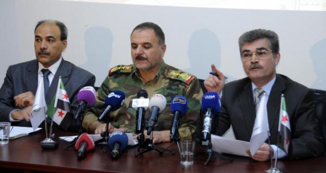 Suriye Geçici Hükümeti'nin Gaziantep'teki merkez binasında beraberinde Sağlık Bakanı Muhammed Vejih Cuma ve Adalet Bakanı Abdulrezzak El Hüseyin ile birlikte basın toplantısı düzenleyen ÖSO Genelkurmay Başkanı Barri, Rusya'nın 76 gündür Suriye'de rejime destek verdiğini ve özgürlük isteyen muhalifler ile sivilleri hedef aldığını söyledi.