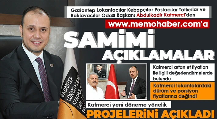 Gaziantep Lokantacılar Kebapçılar Pastacılar Tatlıcılar ve Baklavacılar Odası Başkanı Abdulkadir Katmerci, kentteki yeme içme sektörüne dair www.memohaber.com' önemli ve samimi açıklamalarda bulundu.
