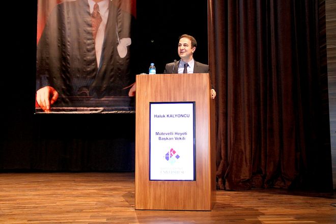 Açılış konuşması yapan HKÜ Mütevelli Heyeti Başkan Vekili Haluk Kalyoncu, “Hasan Kalyoncu Üniversitesi Gaziantep Eğitim ve Hizmet Vakfı tarafından bölgenin ilk vakıf üniversitesi olarak kuruldu. 28 ilde vakıf yatırımı yüksek öğretim kurumu olarak ilk kurulan vakıf üniversitesidir. Üniversitelerimiz niceliğin niteliklerle ayrıştığı dünyada evrensel bilgi ve belgelerin sürekli güncellenen müfredatın takip edildiği, akademik kariyerin, araştırmaların, uzmanların, doktorların ve bilim adamlarının yetiştiği yerdir. Üniversiteler ayrıca ülkemizin insan kaynağının da yetişmesinde önemli rol oynayan kurumlarımızdır. Üniversitemizde bursluluk oranı yüzde 40 seviyesindedir. Hasan Kalyoncu Üniversitesi ekonomik bir üniversitedir. Yüksek fiyat anlayışı hiçbir zaman olmamıştır. Bununla beraber tüm öğrencilerimiz üniversitede eğitimini sürdürürken başarı bursu elde edebilmektedir” dedi.