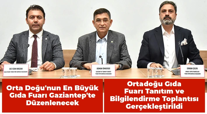 Türkiye Odalar ve Borsalar Birliği (TOBB) desteği ile, Gaziantep Sanayi Odası (GSO) ve Nobel Expo Fuarcılık iş birliğinde; 7-9 Mayıs 2025 tarihinde Gaziantep Ortadoğu Fuar Merkezi’nde (OFM) düzenlenecek "Ortadoğu Gıda Fuarı" ile ilgili tanıtım ve bilgilendirme toplantısı yapıldı.