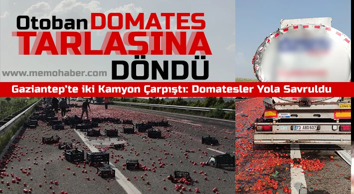 Kaza Gaziantep Nizip otobanında meydana geldi. Edinilen bilgilere göre aynı istikamette ilerleyen bir tanker ile domates yüklü bir kamyon çarpıştı. Kazada ölen yada yaralanan olmazken, domatesler yola savruldu. Kaza sonrası yola savrulan domateslerden dolayı yol kısa süre trafiğe kapanırken otoban adeta domates tarlasına döndü.