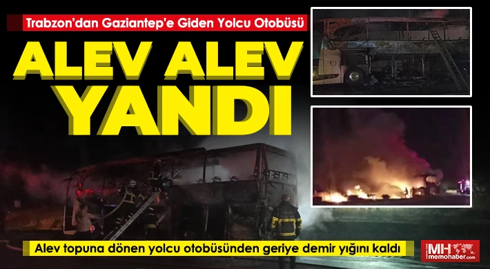 Sivas'ta, Trabzon'dan Gaziantep'e giden yolcu otobüsü alev alev yandı. O anlar cep telefonu kamerasına yansırken otobüsten geriye demir yığını kaldı.