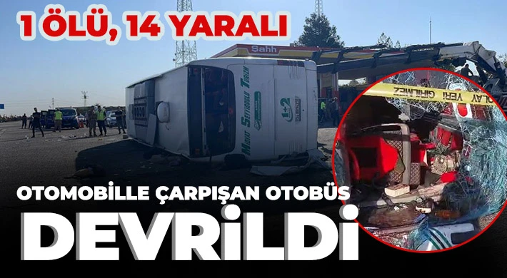 Şanlıurfa’nın Viranşehir ilçesinde otomobil ile çarpışan otobüsün devrilmesi sonucu meydana gelen trafik kazasında 1 kişi hayatını kaybederken 14 kişi ise yaralandı.