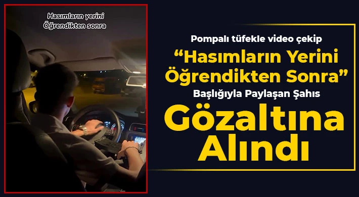 Gaziantep'te aracının içerisinde bir video çekerek, “Hasımların yerini öğrendikten sonra” başlığıyla sosyal medya hesabında paylaşan İ.K.M., vatandaşların emniyet güçlerine ihbar etmesi üzerine takibe alındı. Polis ekipleri, yaptığı çalışmanın ardından şahsı görüntüde kullandığı pompalı tüfekle birlikte yakalayarak gözaltına aldı.