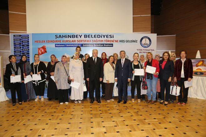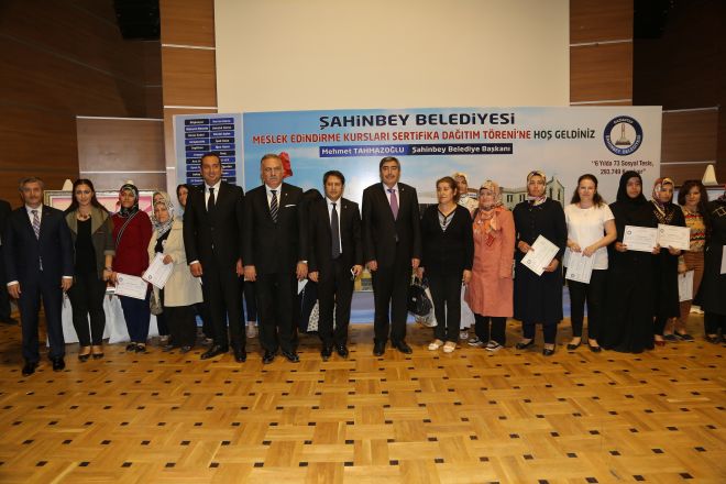 Konuşmaların ardından Meslek Edindirme Kurslarından mezun olan 889 öğrenciye, Maliye Bakanı Mehmet Şimşek, AK Parti Genel Başkan Yardımcısı Abdülhamit Gül, AK Parti Milletvekili Nejat Kocer, Canan Candemir, Mehmet Erdoğan, AK Parti İl Başkanı Eyüp Özkeçeci, Büyükşehir Belediye Başkanı Fatma Şahin, AK Parti Şahinbey İlçe Başkanı Av. Hakan Kurt, AK Parti Milletvekili Adayları Fikret Tural, Ali Şahin, AK Parti Kadın Kolları Başkanı Filiz Üzücü sertifikalarını verdi.