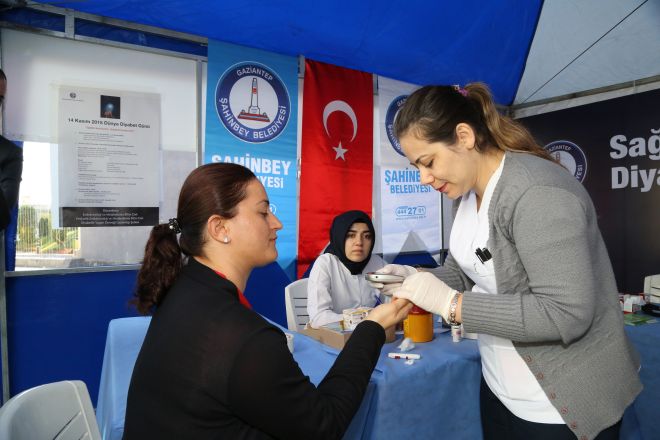 Şahinbey Belediyesi ve Gaziantep Üniversitesi (GAÜN) işbirliği ile 14 Kasım Dünya Diyabet Günü etkinlikleri çerçevesinde, vatandaşlara ücretsiz kan şekeri ölçümü yapıldı.