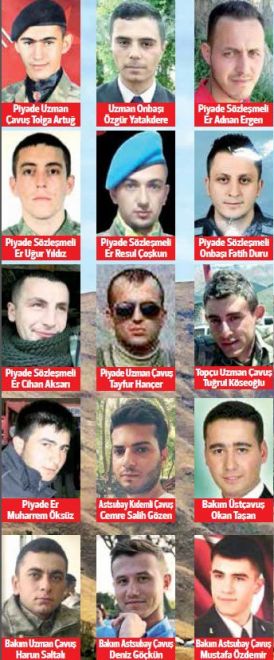 İşte şehit olan askerlerin isimleri ve memleketleri;