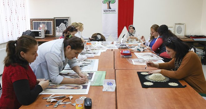 Şehitkamil Belediyesi Hanımlar Lokali Kağıt Rölyef Kursu’na katılan ev hanımları, öğrendikleri bilgi ve becerileri kağıt rölyefe üç boyutlu işliyor. Kursa katılan ev hanımları, birbirinden güzel üç boyutlu eserler üretiyor.